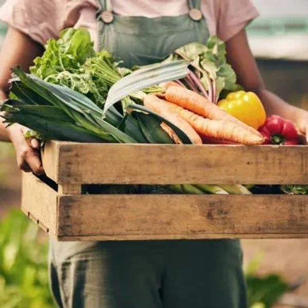 Seasonal boxes with fresh, organically grown vegetables, herbs, and occasional surprises like honey or handmade products.